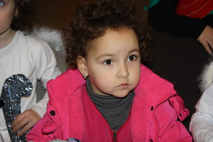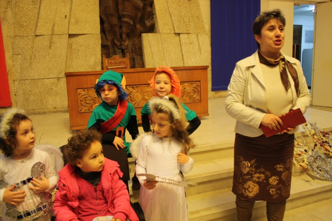 А пред всички, в началото на базара, на столче беше Габи, заобиколена от момиченца, облечени като снежинки и принцеси и момченца-джудженца, които не спираха да я обгрижват и й се радват. Малко притеснена, но повече усмихната, Габи привлече присъстващите със своята непринуденост, миловидност и слънчево излъчване.