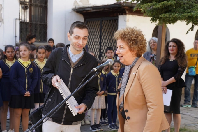 "Отличието на Борислав е признание към младите хора в Севлиево, съвременните български будители", каза Даниела Христова минути преди да връчи удостоверението за стипендията на младия мъж, който е студент във Великотърновския университет "Св. св. Кирил и Методий".