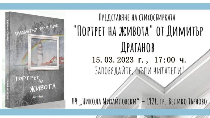 Народно читалище „Никола Михайловски - 1921“ и Димитър Драганов канят всички почитатели на римуваното слово на премиерата на втората стихосбирка на поета „Портрет на живота“, издадена с издателска къща „Многоточие“.
