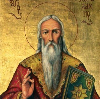 Св. Харалампий е живял през ІІ век. Бил епископ в Мала Азия. През целия си живот проповядвал Христовата вяра. Но император Септимий Север започнал гонение над християните. Те били принудени да се поклонят на идолите. Харалампий, който бил на повече от 100 години, когато го заловили и принуждавали доброволно да се отрече от Христос, отказал. Последвали изтезания, но след всеки ден на мъчения, на другата сутрин раните му зараствали. Издъхнал на път към мястото, където трябвало да бъде посечен с меч.Когато го завели на мястото, Св. Харалампий вдигнал ръцете си към небето и се помолил Богу за всички люде - да им даде телесно здраве и душевно спасение, като им умножи земните плодове. "Господи, казал в молитвата си, - Ти знаеш, че човеците са плът и кръв. Прости им греховете и излей Твоята благодат над всички!"