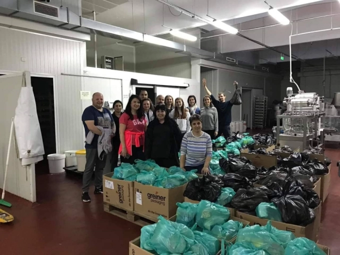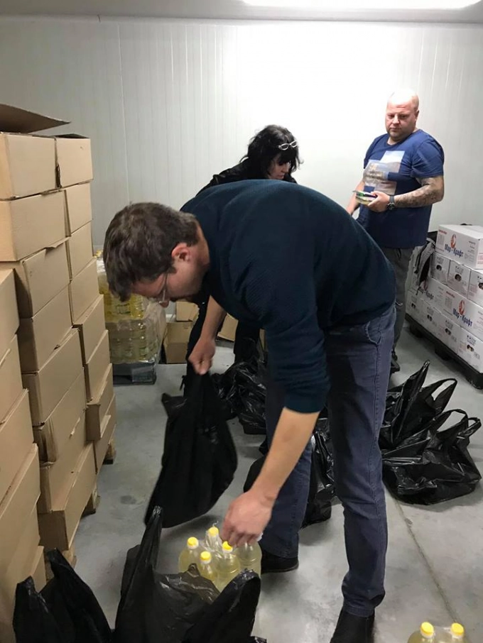 Доброволци пакетират продуктите