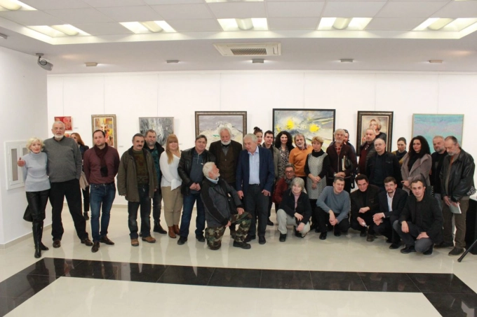 Художниците, които подредиха изложбата "Лъч светлина" - приятели на Ирина, на галерия "Видима" и Севлиево, фотограф: Деяна Денева