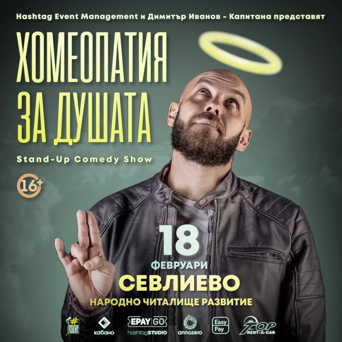 Първият български вентролог и един от най-добрите стендъп комедианти в страната Димитър Иванов – Капитана отново гостува в Севлиево със своето ново стендъп комеди шоу „Хомеопатия за душата”.