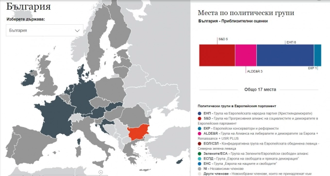 ГЕРБ е с около 7% преднина пред БСП, при изключително ниска избирателна активност. ДПС най-вероятно ще остане с три мандата, вместо досегашните четири. Евродепутати със сигурност ще има ВМРО, под въпрос до окончателното обработване на изборните протоколи остава евродепутатското място за "Демократична България".