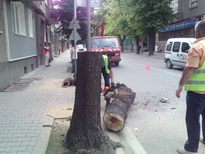 В Севлиево дърветата изчезват, изсечени заради ремонт на улици и тротоари. Сечта е на основание заповед на кмета на общината, на когото законът е вменил и контрола по опазването на декоративната градска растителност, както и санкционирането на нарушителите.