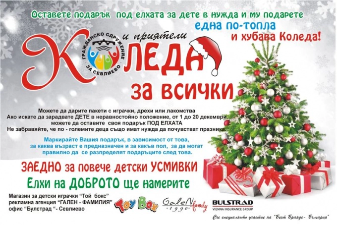 "Гражданско Сдружение за Севлиево" и приятели за втора година стартират кампания "Коледа за всички".
