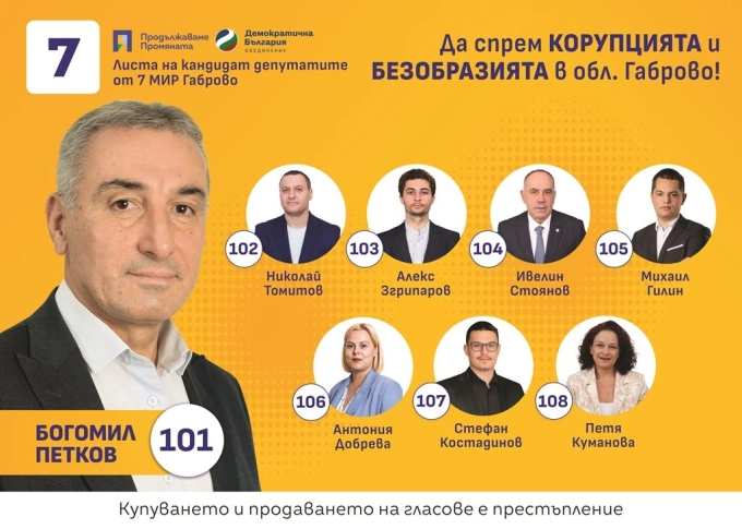 Листата за народни представители на коалиция „Продължаваме Промяната – Демократична България“ за 7 МИР Габрово събира хора с разнообразни професии и житейски опит, обединени около каузата безобразията в България да бъдат спрени.