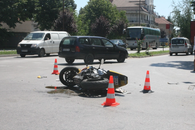 Мотоциклетист и спътничката му, по предварителни данни и двамата от Плевен, катастрофираха днес по обед на кръстовището до бившата "Акта Медика". Двамата се движели по ул. "Никола Петков" в посока "Топливо". Малко преди светофара друг автомобил, който идвал от "Топливо" и завивал наляво, в посока Сенник, станал причина движещият се, по думи на очевидци, с висока скорост мотоциклет да се обърне в средата на кръстовището. По всяка вероятност мотористът е искал да избегне удара със завиващия автомобил, но скоростта, с която навлязъл в кръстовището, не му дала възможност да бърза реакция. Дали е така, униформените тепърва ще установят.