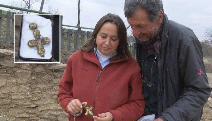 Златният кръст е изцяло запазен. Намерен е в хоросанова камера зад олтарния стълб в църквата. Тежи 75 г и се отличава с ювелирна изработка. Това е единственият кръст енколпион от чисто злато, намиран досега не само у нас, но и в света, твърдят археолозите.