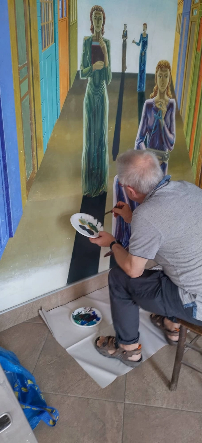 Световноизвестният български художник Николай Панайотов, който живее и работи от 30 години във Франция, реставрира соствения си стенопис във фоайето на Народно читалище „Развитие-1870”.