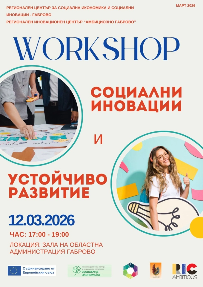 Регионалният център за социална икономика и социални иновации - Габрово организира обучение за младите хора в града по младежко предприемачество, социални иновации и устойчиво развитие. То ще се проведе на 12 март 2026 г., четвъртък, от 17.00 до 19.00 часа в залата на Областна администрация – Габрово. Събитието се осъществява съвместно с Регионален иновационен център (РИЦ) „Амбициозно Габрово“ и Младежки център – Габрово и е с подкрепата на Областния управител на Габрово.