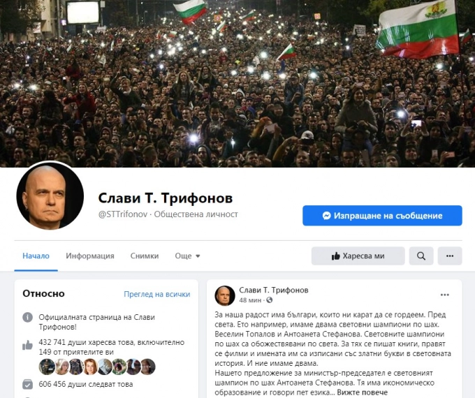 Антоанета Стефанова е представена като човек, който има икономическо образование и говори пет езика. "Сравненията, размислите и изводите оставям на вас", пише Трифонов в поста си.