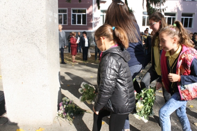 Деца оставиха цветя пред бюста на Стефан Пешев