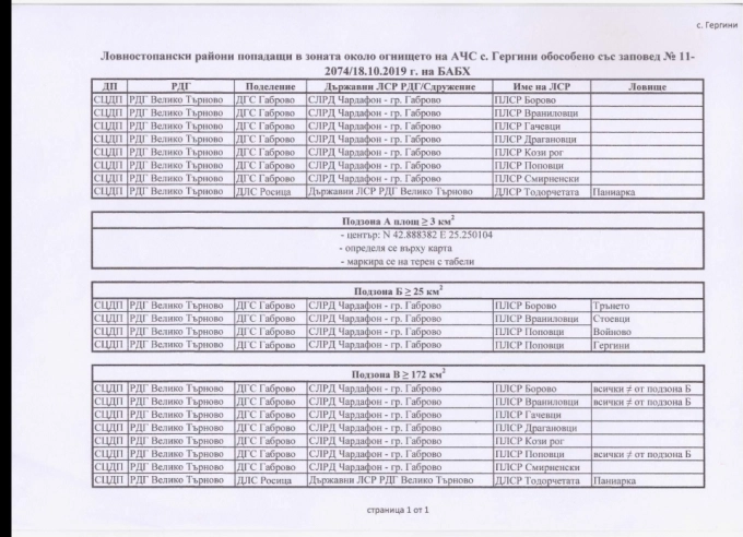 Във връзка с това има издадена заповед на Министъра на земеделието, храните и горите, с която са посочени географски координати и е определена инфектирана зона от 200 кв. км около констатирания случай.