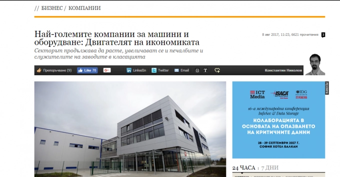 Пет компании за производство на машини и оборудване от община Севлиево са в Топ 40 на в. „Капитал“. Общата им печалба за миналата година е 42 830 хил. лева. Реализираните приходи от петте водещи в бранша за цялата страна е в размер на 982 601 хил. лева.