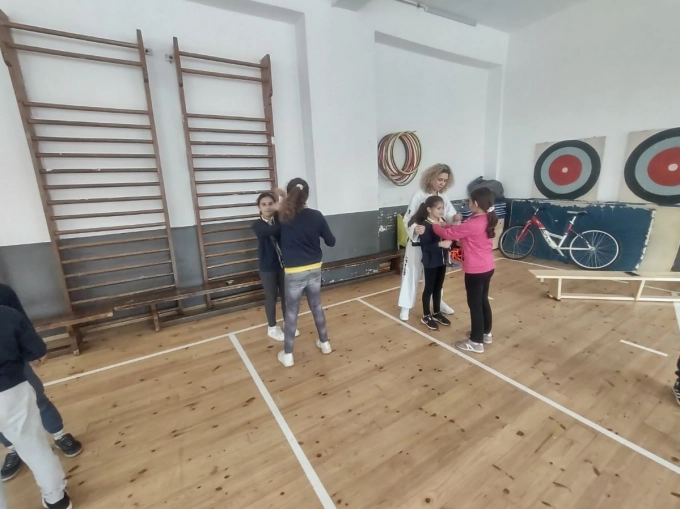 Инспектор Иванова - служител в РУ Севлиево, носител на mърви дан по таекуон-до ИТФ и сертифициран съдия, им разказа за историята на таекуон-до и неговата философия. За децата беше интересно и вълнуващо да научат, че философията на бойното изкуство се гради върху принципите учтивост, почтеност, постоянство, самоконтрол и непоколебим дух.