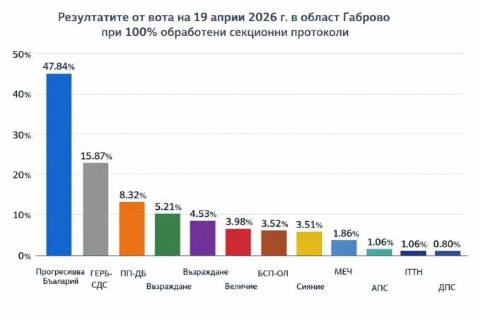 Сега остава да се види разпределението на четирите мандат от Габрово, но при тези резултати няма никакво съмнение, че "Прогресивна България" ще има двама депутати от Габрово и Данаил Лалев от Севлиево е един от тях.