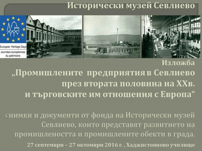 Промишлените предприятия на Севлиево през втората половина на 20 век и търговските им отношения с Европа, показват от утре в продължение на един месец в Исторически музей Севлиево. Изложбата съдържа снимки и документи от фонда на музея, които показват развитието на предприята в един от най-силно развитите индустриални градове у нас.
