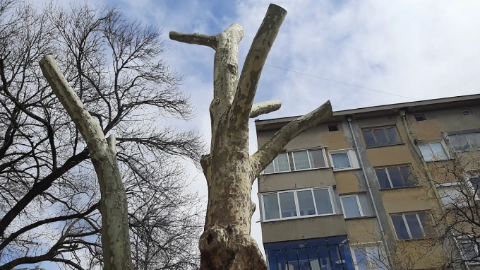 Този чинар е безогледно окастрен, но Общината не предостави санитарна експертиза, която да препоръчва подобно обезглавяване на дървото, снимка: "Севлиево онлайн"