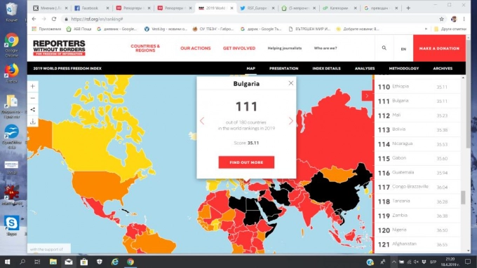 В следствие на всичко това, по свобода на словото страната ни запазва 111 място (от общо 180 държави) в класацията на организацията. Това е най-ниската позиция не само в ЕС, но и в целия регион. В световната класация точно преди България са Ангола и Етиопия, а веднага след нея – Мали и Боливия.