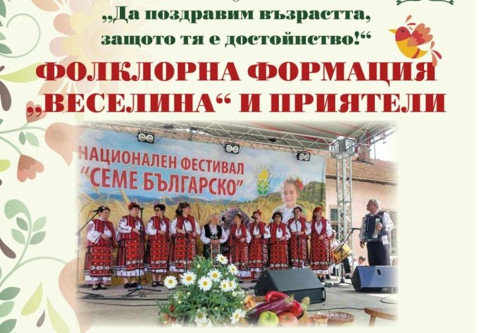 Фолклорна формация „Веселина” при Народно читалище „Развитие-1870” и приятели канят на концерт, посветен на възрастните хора, под мотото „Да поздравим възрастта, защото тя е достойнство”.
