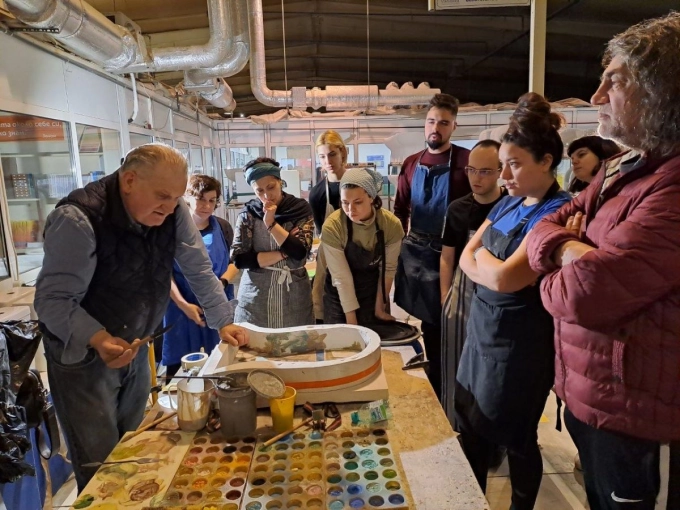 Тази година творческият стаж на студентите от Нов български университет в Севлиево премина в изучаване на нова техника - трансферна ангобна техника в гипсов калъп. Това е една от най-интересните техники в съвременната керамика, характерна за творчеството на проф. Бончев.