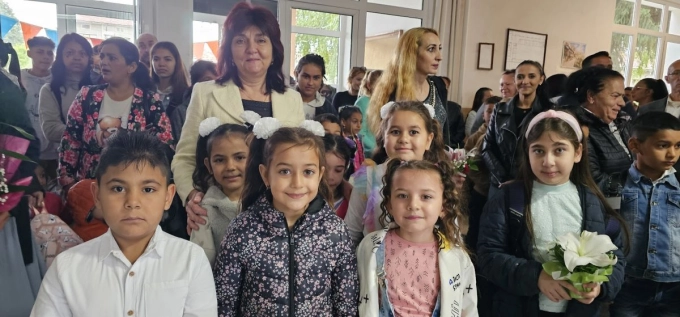 Някои от децата, записани за първи клас, не говорят български. Някъде до Коледа учат езика, а това е половината от учебната година. "Имаме изключителни учители - всеотдайни, мотивирани и опитни", споделя още Гърков. Казва го и в приветствието си по-късно пред всички.