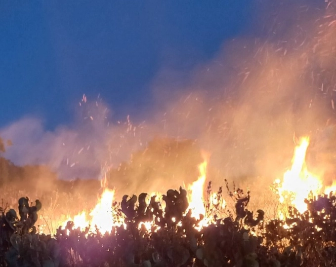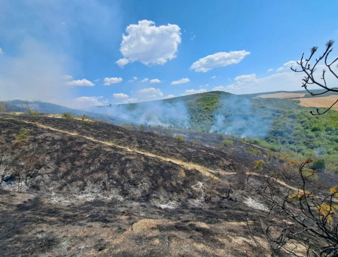 Пожар край Полски Тръмбеш вдигна на крак десетки служители и доброволци, снимка: СЦДП