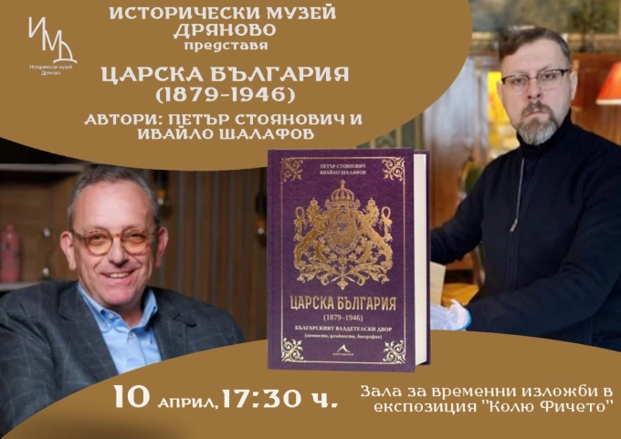 Исторически музей – Дряново ще бъде домакин на представянето на книгата „Царска България (1879–1946). Българският владетелски двор (личности, длъжности, биографии)” с автори проф. дин Петър Стоянович и доц. д-р Ивайло Шалафов. Събитието ще се състои на 10 април, четвъртък, от 17.30 часа в Залата за временни изложби в експозиция „Кольо Фичето“ на Исторически музей – Дряново.