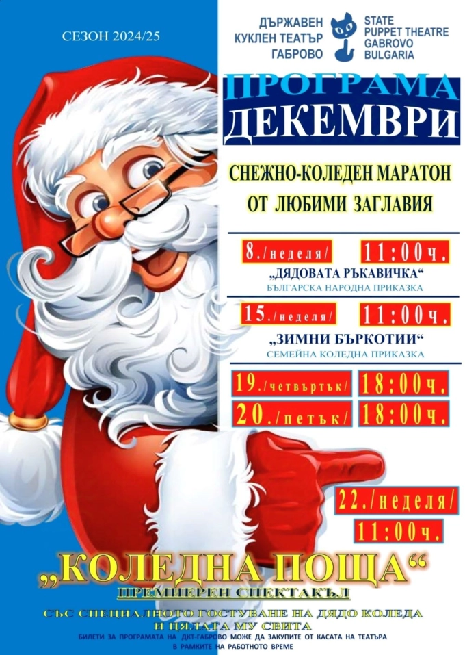 На 19 и 20 декември от 18 ч. и на 22 декември от 11 ч. е премиерата на "Коледен спектакъл", със специалното участие на Дядо Коледа.