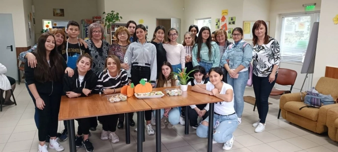 Веган бонбони с тиква и тиквен кухин с парченца захаросани плодове и шоколадови капки е резултатът от съвместното готвене на ученици, техни баби, бивши учителки. Инициативата е по национална програма „Заедно за всяко дете“ - Мост между поколенията и е наречена „Кулинарни рецепти от старите тефтери на баба“.