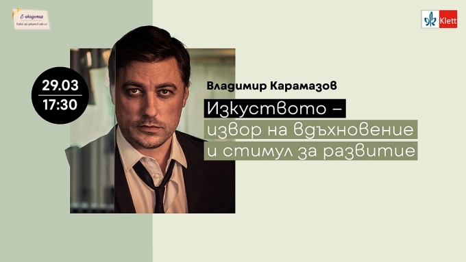 На 29 март от 17:30 часа предстои първата среща от тазгодишното издание на инициативата Е-Академия на издателство Клет България, когато гост-лектор ще е харизматичният актьор, фотограф и продуцент Владимир Карамазов. Темата на онлайн събитието е „Изкуството – извор на вдъхновение и стимул за развитие“.
