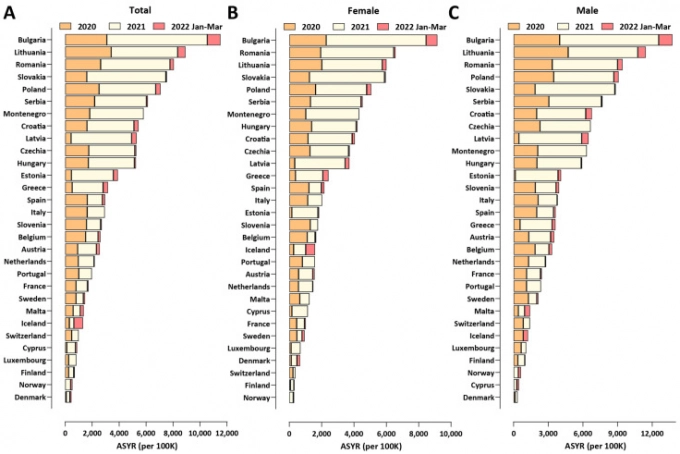 Според авторите особено тежкото отражение на пандемията в България се дължи на комбинацията от неблагоприятна демография, неконтролирано разпространение на вируса, лошо подготвена болнична система и ниски равнища на ваксинация.