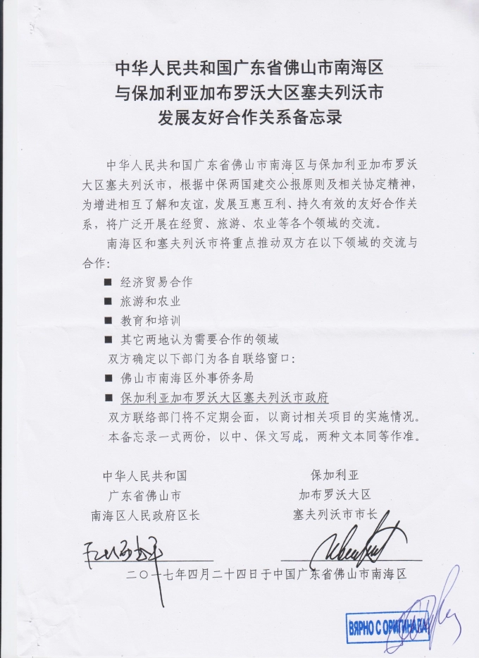 Меморандумът, който кметът на Севлиево подписа с колегата си от град Нанхай в Китай, е достъпен само за китайци и хора, владеещи езика. Това става ясно, след като по-рано днес получих отговора на подаденото от мен на 12 май заявление за достъп до обществена информация до Община Севлиево. С него поисках да ми бъдат предоставени разходите, които тричленната делегация на Община Севлиево, в която влизат кметът Иванов и заместничките му Георгиева и Тодорова, са направили за визитата до Нанхай в Китай, както и копие на меморандума, който кметът е подписал.