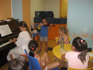 И понеже малките са любознателни, учителите в Детски комплекс ги провокират и с по-сериозни занимания. В Музикално ателие, подготвено от Валерия Друмева, в два последователни дни децата оцветяваха, танцуваха, писаха ноти и се запознаха с инструмента цигулка, като всяко дете имаше възможност да „посвири” на истинска цигулка.