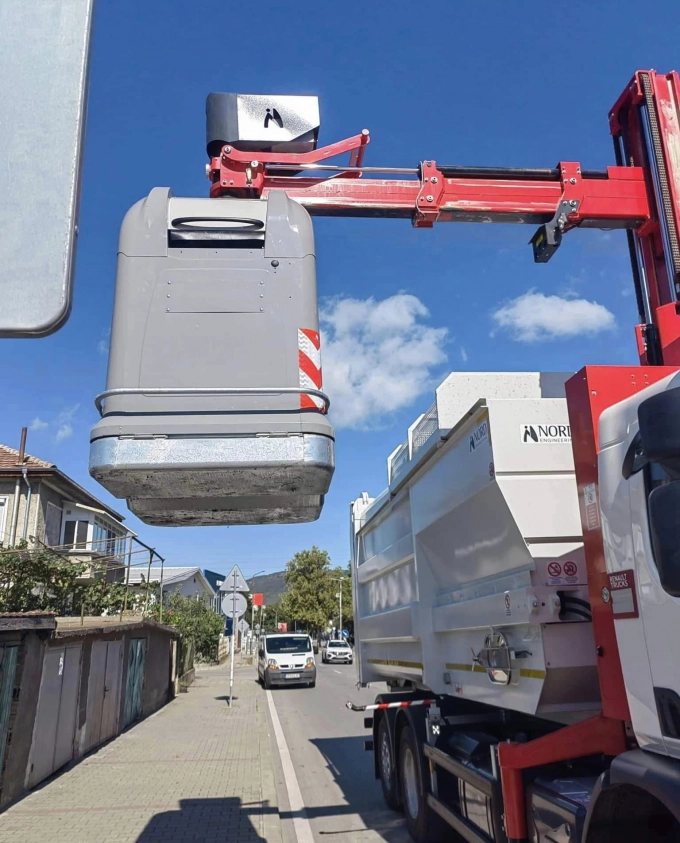 Новите контейнери се обслужват напълно механизирано. За целта е закупена автоматизирана техника, оборудвана с надстройка с вариопреса и с кран на камиона.