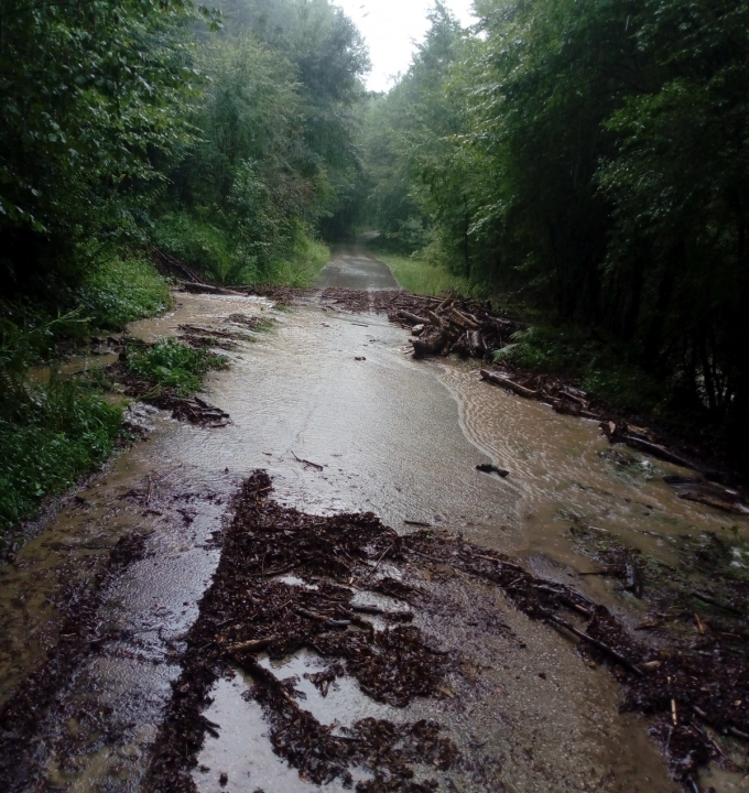 Пътища в балканските райони на община Севлиево са осеяни с нападали дървета и храсти, а водата продължава да влачи още. На места деретата са толкова пълноводни, че почти са се изравнили с нивото на пътното платно. Ситуацията е тежка от петък, но след падналия днес пороен дъжд обстановката остава усложнена.