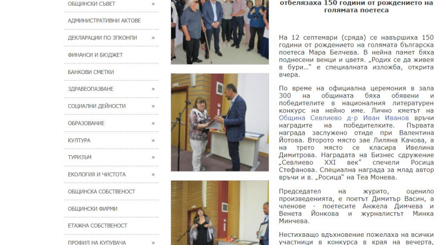 Вероятно би могло да се приеме за странно, че в Община Севлиево, която е организатор на националния конкурс за поезия на името на Мара Белчева, не знаят, че тя е родена на 8 септември, а не на 12-ти. Всъщност е срамно. И непростимо. Защото става дума за Общината, чийто кмет връчва национални награди за поезия. Иначе не са пропуснали да му публикуват снимки с всички наградени.