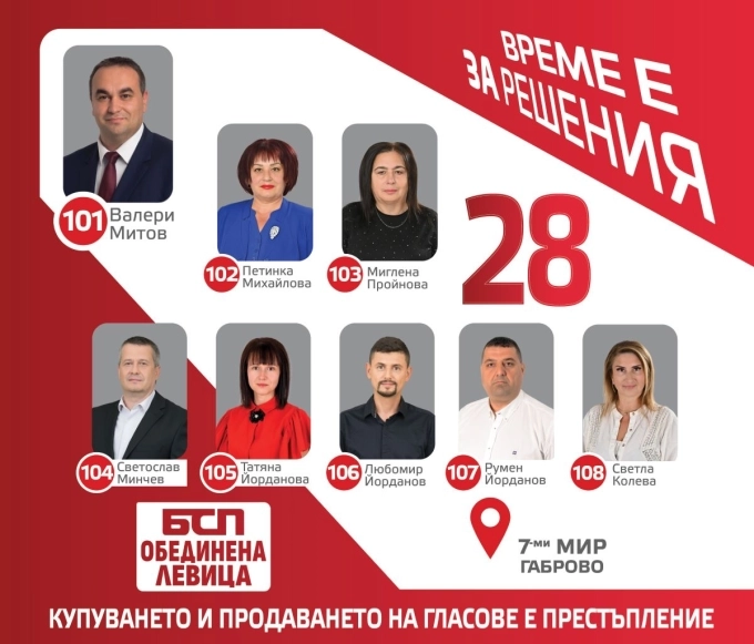 Подкрепете БСП-ОБЕДИНЕНА ЛЕВИЦА с номер 28 в бюлетината!