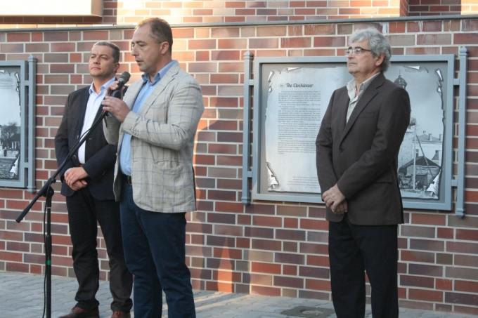 Директорът на Историческия музей Найден Петров разказа историята и особеностите на севлиевската часовникова кула пред дошлите тази вечер за откриването на изложбата, поставена върху оградата на къщата зад кулата, собственост на сем. Маркови – Лили и Мирослав. Самият Мирослав Марков сподели, че идвайки на това място той и семейството му са искали то да не остане в нищото и така се родила идеята за постоянната експозиция.