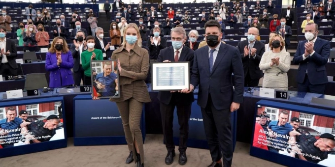 На 20 октомври лидерите на политическите групи в Европейския парламент и председателят на Парламента решиха да връчат наградата "Сахаров" за свобода на мисълта за 2021 г. на Алексей Навални. Той получи международна известност с организирането на демонстрации срещу руския президент Владимир Путин и неговото правителство, с участието си на избори и с призивите си за реформи срещу корупцията.