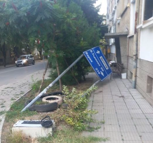 При катастрофата има нанесени щети по уличната инфраструктура - повреден е метален стълб с табела, се вижда от снимки, публикувани във фейсбук. Видими са и щетите по двата автомобила, но за щастие няма пострадали, казаха от полицията.