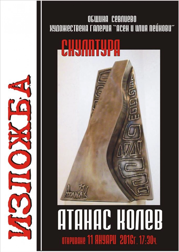 На 11 януари в залите на Градската художествена галерия "Асен и Илия Пейкови" ще бъде открита изложба скулптура на Атанас Колев. Роденият в Пловдив художник е получил признанието на редица европейски музеи, негови творби има в частни колекции в България, Румъния, Унгария, Австрия, Италия, Германия, Франция, Дания, Холандия. Той е организатор и художествен директор на ежегодния международен симпозиум „Ателие на Дунав“, който от 2006 г. се провежда в гр. Пьохларн, родното място на експресиониста Оскар Кокошка.