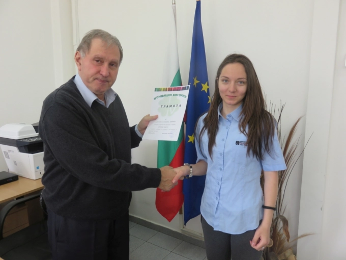 Приключилият през април конкурс за написване на есе на тема „Алхимия на времето“, организиран от Фондация „Вигория“, донесе награда на десетокласничката от ПГМЕТ „Ген. Иван Бъчваров“ Доротея Минчева. За есето си „Алхимия на времето“ тя бе удостоена с призово място и грамота за оригинален подход към темата.