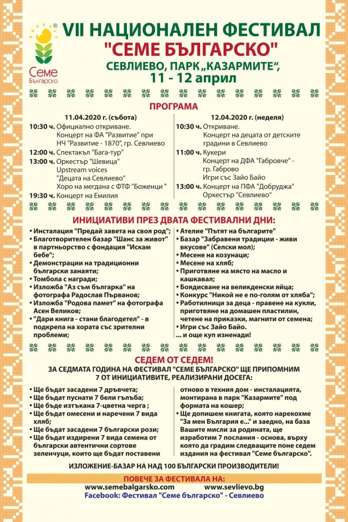 Седмият национален фестивал „Семе българско" ще премине под мотото „Предай нататък", защото организаторите вярват, че сме се съхранили благодарение на умението да помним и предаваме през поколенията знания, опит, традиции и вяра.