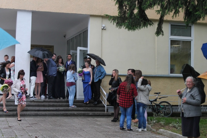 Въпреки студа и дъжда, стотици дойдоха пред училището, за да изпратят абитуриентите на училището и им пожелаят "На добър час!". И всички се надяваха, че дъждът в случая означава само едно - на младите ще им върви по вода.