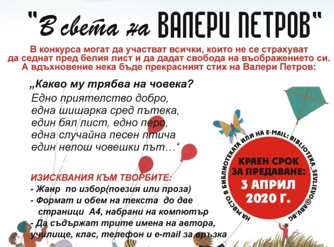Градска библиотека Севлиево обяви резултатите от литературния конкурс за деца, който тази година бе под наслов "В света на на Валери Петров".