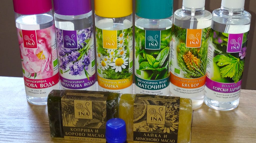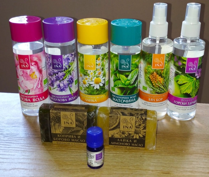 Ina Еssentials е фамилна фирма, която повече от десетилетие се занимава с биологично земеделие и биологична преработка на етерично-маслени култури. Фирмата отглежда насаждения с био лавандула, рози, смрадлика, коприва, лайка, салвия и смрадлика, а от тях произвежда натурални билкови води, незаменим помощник в справянето с кожни и козметични проблеми, билкови масла, шампоани и сапуни.