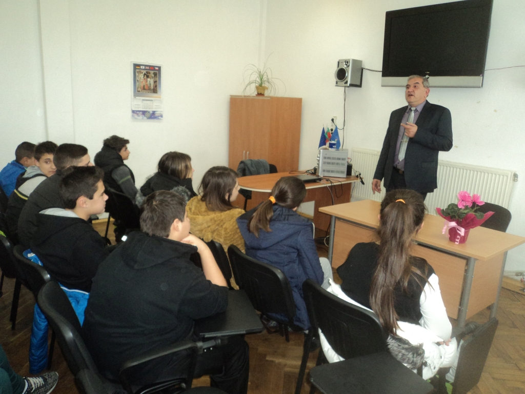 Седмокласниците имаха среща с доц. Станислав Симеонов, преподавател в Бургаския свободен университет, за когото казват, че знае повече от всички за компютрите.