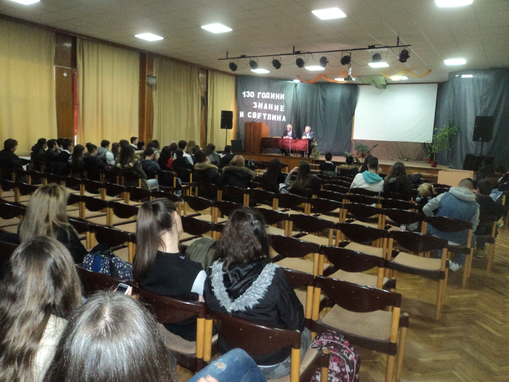 Учениците от горен курс имаха удоволствието да се срещнат и с доцент д-р Яким Якимов – специалист по неврология, невротерапия и психология, който живее в Кръвеник и с удоволствие взе участие във всички мероприятия, свързани с честването на годишнината.